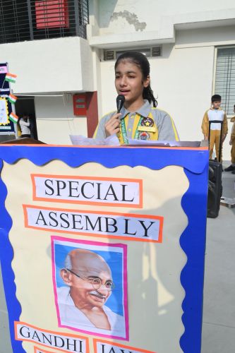 Mother Divine Public School, Rohini conducted a special assembly on the occasion of Gandhi Jayanti and Lal Bahadur Jayanti to pay tribute to their legacy which continues to inspire us all. The principles Gandhiji stood for, are still invoked across India and the world. The assembly commenced with informative biographies about the life and sacrifices made by both the great leaders in gaining freedom for our country. The poem recited by the student focused on values and ethics which Bapu has strived to inculcate in Indians for the betterment of society and human mankind in general. The students of Grade VI depicted the three ideals of Gandhi Ji i.e. See no Evil, Hear no Evil and Speak no Evil. The assembly concluded with the motivational message by the coordinator of the Middle Programme and wished for a brighter and peaceful future in the coming times. It was indeed a day of joy and all the students were imbued with Gandhian values and vowed to become better citizens of India.
