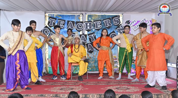 Students of Grades III to VIII presented a lively dance, showcasing their admiration and respect for their teachers. The audience was then deeply moved by a skit on Eklavya, which highlighted the values of devotion and sacrifice towards one’s guru.