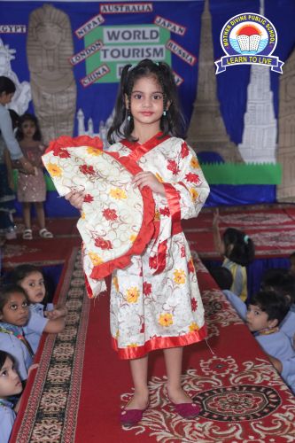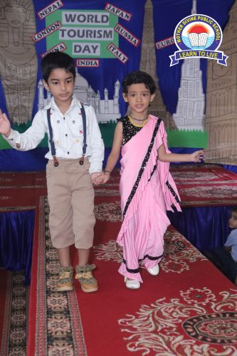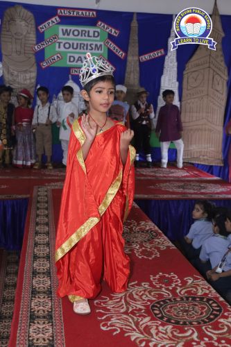 Mother Divine Public School was filled with vibrant colors and cultural flair during the Costume Flamingo Galaxy Parade. This exciting event celebrated global diversity, on World Tourism Day allowing students to explore and showcase the rich traditions of various countries. The highlight was a lively ramp walk, where students proudly wore stunning traditional costumes and carried their assigned countries' flags. Each student gave short presentations, sharing insights into their countries’ unique cultures, traditions, and languages, turning the parade into an interactive and educational experience. The event fostered cultural appreciation and a sense of global citizenship, teaching students to respect and celebrate diversity in a fun and immersive way. The school courtyard buzzed with applause and excitement as students confidently represented different nations. The Costume Flamingo Galaxy Parade was a heartwarming success, promoting unity in diversity and leaving everyone with lasting memories.
