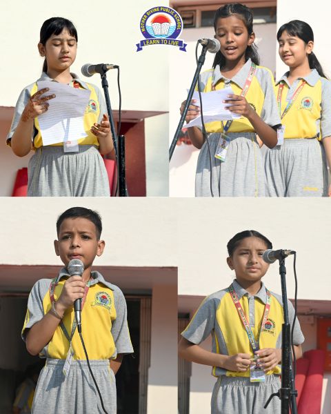The assembly began with a warm welcome speech by the anchors, followed by a soulful prayer by the school choir, invoking peace and harmony. Thereafter, the National and International News along with the Weather Report were presented, keeping everyone informed and connected with the world around us. The Thought of the Day emphasized the value of kindness and humanity.