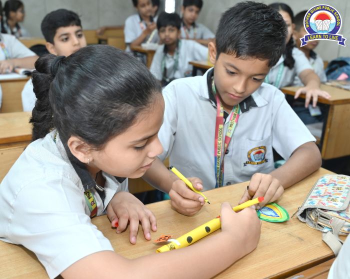 Students of Mother Divine Public School participated in a vibrant and enriching series of activities conducted by Yamuna House on 8th August 2025. These included Rakhi Rachna, Paper Flute Making, and Dahi Handi Pot Decoration, aligning with the festive spirit of Raksha Bandhan and Janmashtami.