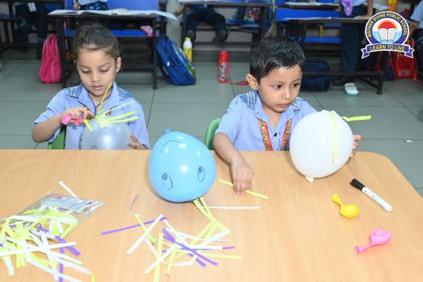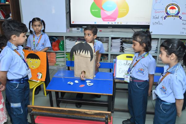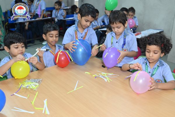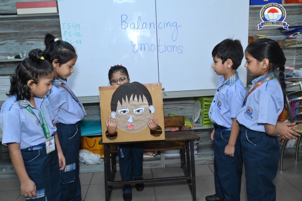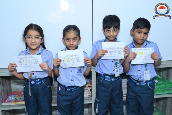 The Balancing Emotions activity on September 23, 2024, focused on developing motor skills, creativity, emotional awareness, and teamwork. Nursery students made Emotion Masks, while Kindergarteners trimmed balloon paper hair to improve fine motor skills. First graders took part in a blindfolded Build-a-Face challenge, promoting teamwork, and Second graders colored emojis to express their feelings. The day was filled with laughter and creativity, making the experience fun and memorable.