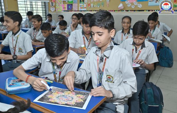 Grade 5 students enjoyed a fun-filled non-fire cooking activity, preparing delightful festive platters, while Grade 6 students tested their knowledge and teamwork through a quiz on Unity in Diversity. The older students also contributed to spreading awareness and creativity — Grade 7 students designed expressive posters promoting a Green Diwali, and Grade 8 students showcased their artistic flair through rangoli-making activities combined with an enlightening session on Climate Change Awareness.