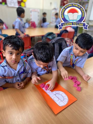 On Wednesday, 18.9.24, an engaging activity was conducted in the nursery class to introduce the number 9. Each child received a large cut-out of the number 9 along with a set of blocks. The task involved counting and placing 9 blocks on the cut-out, helping them visualize the number alongside its quantity.By the end of the session, children confidently identified and counted up to 9. The hands-on approach kept them engaged, making the learning process both fun and effective!