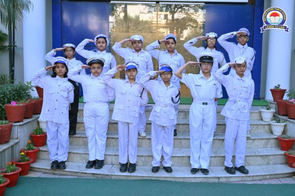 Students of Grades VI-VIII dressed up as Indian Navy Officers to honor the sailors and officers of the Navy who work tirelessly to protect the country’s maritime interests, both in peace and war. They gave a tribute to martyrs through their speeches. A short documentary was also shown to raise awareness about the crucial role of the Indian Navy in national defence and maritime security.