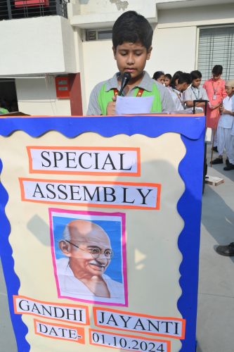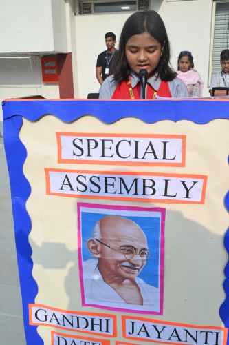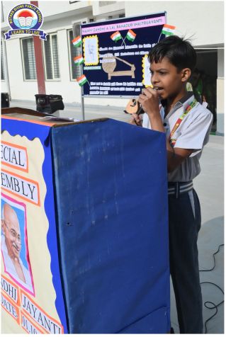 Mother Divine Public School, Rohini conducted a special assembly on the occasion of Gandhi Jayanti and Lal Bahadur Jayanti to pay tribute to their legacy which continues to inspire us all. The principles Gandhiji stood for, are still invoked across India and the world. The assembly commenced with informative biographies about the life and sacrifices made by both the great leaders in gaining freedom for our country. The poem recited by the student focused on values and ethics which Bapu has strived to inculcate in Indians for the betterment of society and human mankind in general. The students of Grade VI depicted the three ideals of Gandhi Ji i.e. See no Evil, Hear no Evil and Speak no Evil. The assembly concluded with the motivational message by the coordinator of the Middle Programme and wished for a brighter and peaceful future in the coming times. It was indeed a day of joy and all the students were imbued with Gandhian values and vowed to become better citizens of India.