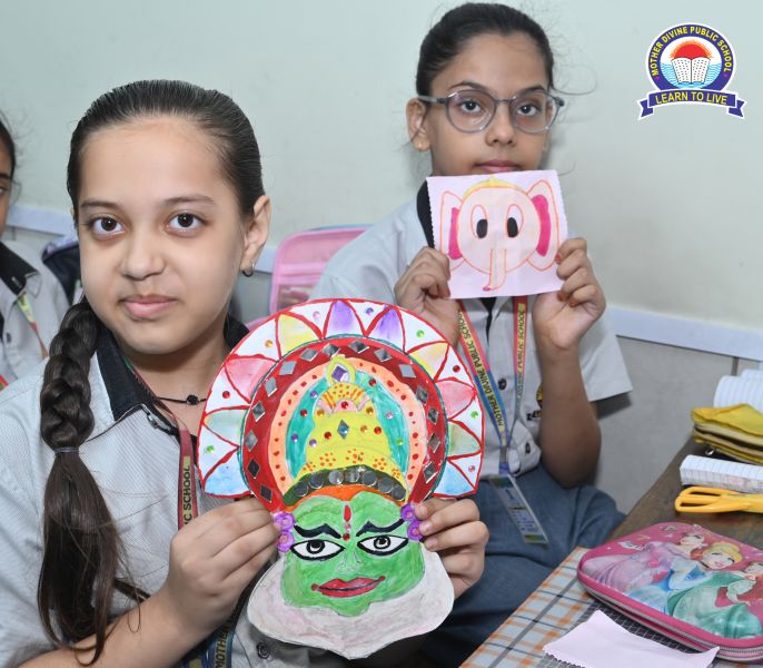 Faces of unity took center stage as Mother Divine Public School hosted the mesmerizing Unity Mask Parade: "Different Faces, One Spirit" on August 22nd, 2025 for the students of Grades III-V wherein they transformed into living, breathing canvases of art and culture, each mask a vibrant reflection of their heritage. Through intricate mask-making, young learners delved into the world of Indian folk art, including Warli and Kathakali, and explored global inspirations like African tribal and Native American ceremonial designs. With eco-friendly materials and artistic flair, each child crafted a unique mask that embodied their chosen cultural heritage.
