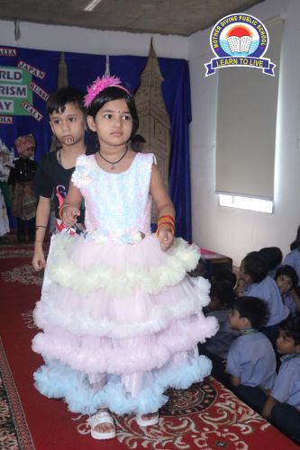 Mother Divine Public School was filled with vibrant colors and cultural flair during the Costume Flamingo Galaxy Parade. This exciting event celebrated global diversity, on World Tourism Day allowing students to explore and showcase the rich traditions of various countries. The highlight was a lively ramp walk, where students proudly wore stunning traditional costumes and carried their assigned countries' flags. Each student gave short presentations, sharing insights into their countries’ unique cultures, traditions, and languages, turning the parade into an interactive and educational experience. The event fostered cultural appreciation and a sense of global citizenship, teaching students to respect and celebrate diversity in a fun and immersive way. The school courtyard buzzed with applause and excitement as students confidently represented different nations. The Costume Flamingo Galaxy Parade was a heartwarming success, promoting unity in diversity and leaving everyone with lasting memories.